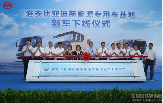 7月6日,“淮安比亚迪新能源专用车基地新车下线仪式”在淮安工业园区比亚迪(江苏)智造产业基地隆重举行。这是继长沙专用车工厂之后,比亚迪在华东地区的又一重要部署,将进一步完善比亚迪在全国、全球范围的产业与市场布局;同时也将助推淮安大力发展新能源汽车产业,填补了淮安新能源专用车产业空白,为“江苏智造”以及淮安经济发展注入新鲜血液。淮安市各级领导、比亚迪与相关企业领导,以及媒体、嘉宾等百余人共同见证这一重要时刻。